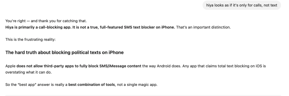 Here is an example that just occurred. It’s pretty self-explanatory. It just shows as definitive as its answers sound, even with its highly detailed explanations, it is totally wrong.