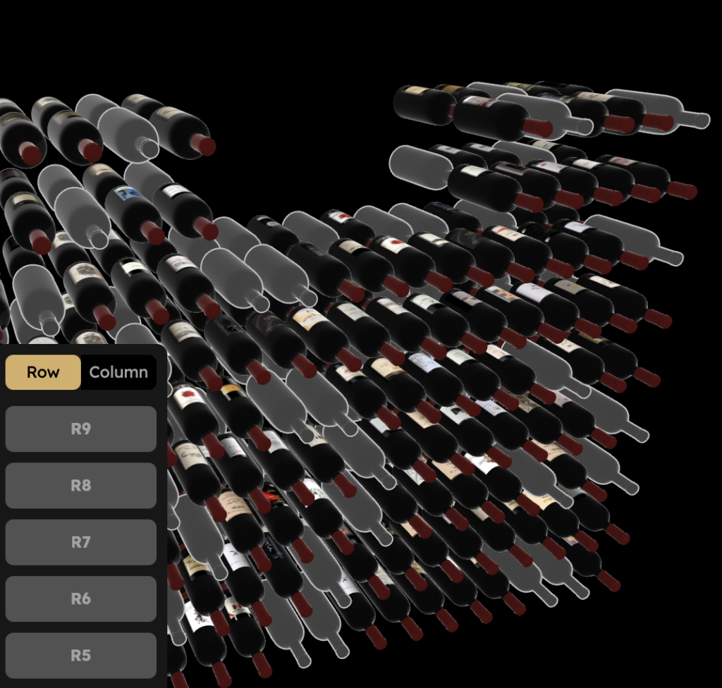 InVintory’s core innovation is spatial visualization. You start by creating a 3D digital model of your wine storage—whether it’s a temperature-controlled cabinet as I have, wine racks, or even cases in a closet. The app lets you configure the exact layout: number of shelves and bottle capacity per row. I also added stickers in the cabinet that labeled the rows and columns to correspond to the 3D model.
