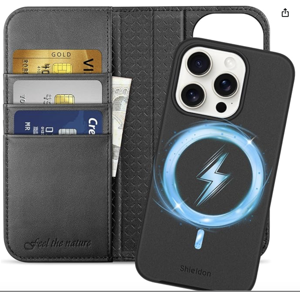 The Shieldon wallet case ($40) from Amazon is a budget option. It offers the same folio design with a removeable phone case as the Vaja and BookBook. It’s not as refined as the others—the leather is thinner and lighter – but it’s remarkably good for the price.