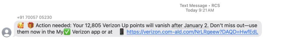 I received this text, supposedly from Verizon, saying I had points that were about to expire and I needed to redeem them soon: