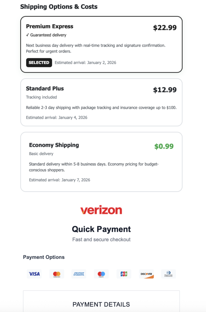 So far so good, but here’s when the red flag really went up, asking for a shipping payment and payment information.