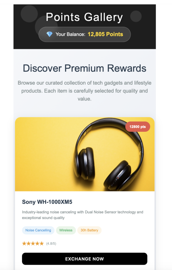 Wow, I have 12,805 points, enough to redeem for a set of Sony headphones. There were more items when I scrolled down, but for fewer points.